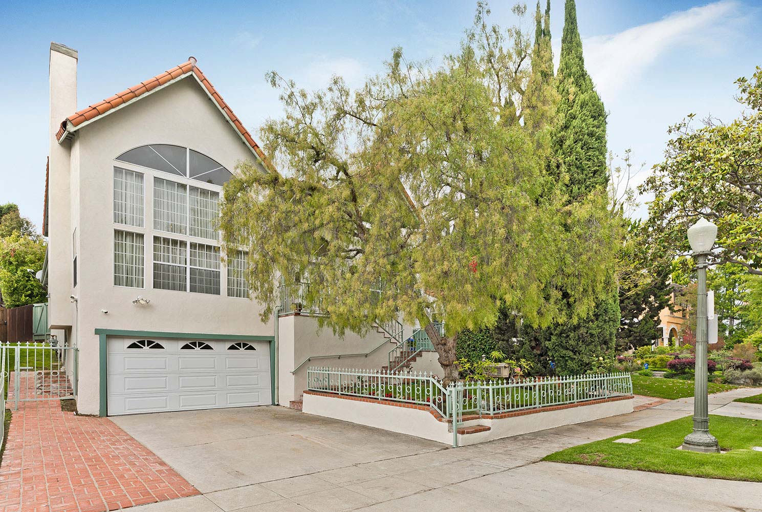 Ideally located in a sought after pocket of Westwood. This lovely 2 story Traditional is on a quiet tree-lined. street. Sunny & bright w/soaring 2-sty ceilings in the living & dining rms. A center curved staircase leads to the 2nd level. All rms are a generous size. The main flr has new, wide plank wood flrs & other amenities. There are 2 tiled firplcs. An alcove leads to the kitch & the FDR. Breakfast nook overlooks the stone-paved patio, built -in BBQ & grotto-like spa. A water feature cascades over rocks from the upper level pool to spa. The guest suite & great rm open to the patio. There is a tiled powder rm off the liv. rm. The 2nd level has a large master w/walk-in closet + two other closets. Master bath has a soaking tub, sep. shower & twin vanities. The master & rear bdrm, open to the tiled balcony. The main flr. bdrm & great rm open to the patio. Home has a gracious flow. Spacious outdoor area is ideal for entertaining & family gatherings.